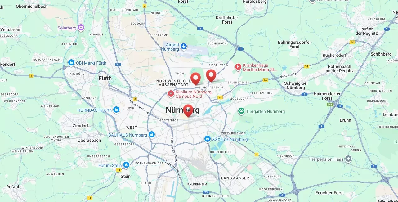 Wählen Sie die Praxis in Ihrer Nähe – alle Standorte sind bequem mit ÖPNV und Auto erreichbar, teils mit Parkplätzen vor Ort. Wir freuen uns auf Ihren Besuch.